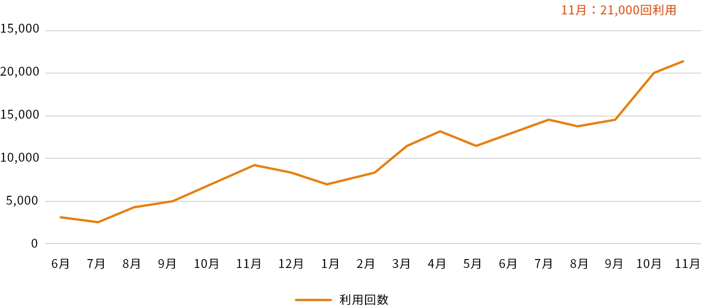 月間利用回数は20,000回を突破し、利用の定着が着実に進んでいます。
