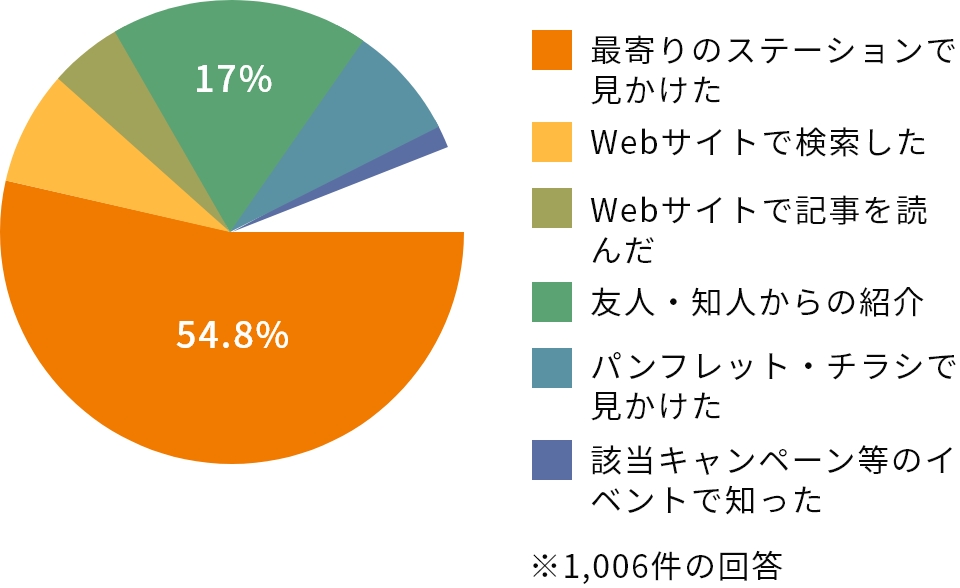 最寄りのステーションで見かけたことにより、シェアサイクルを利用開始している割合が多いことから、ドレスガードの認知効果も高いよ言えます。