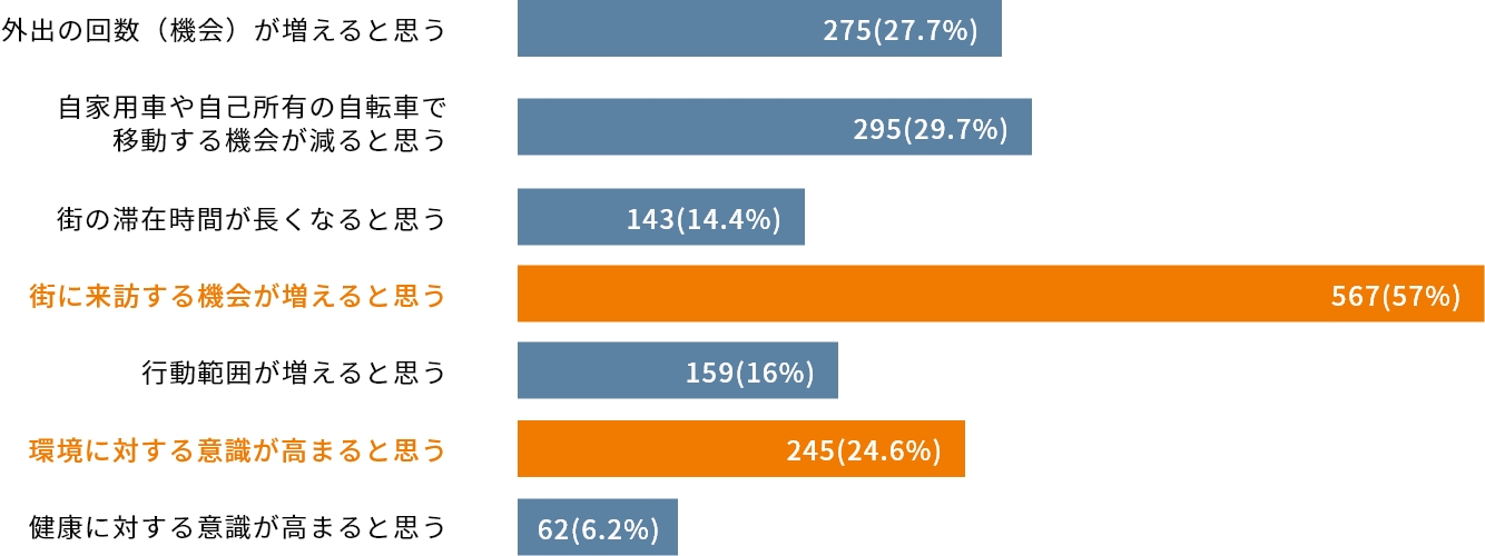 アンケート回答より、シェアサイクルが街の活性化のきっかけや環境問題への意識醸成に寄与できると言えます。