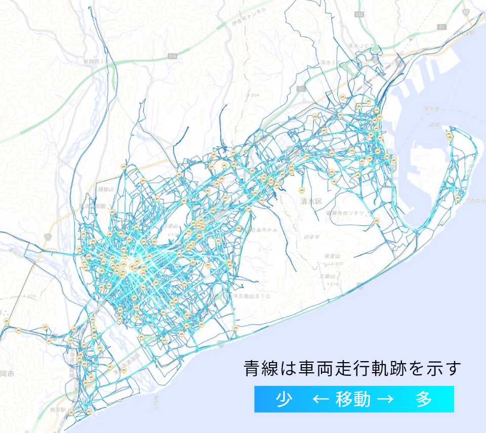 静岡駅を基点とした利用が中心となるが、走行ルートは静岡市内全域に広がるため、幅広く広告効果を生み出しています。
